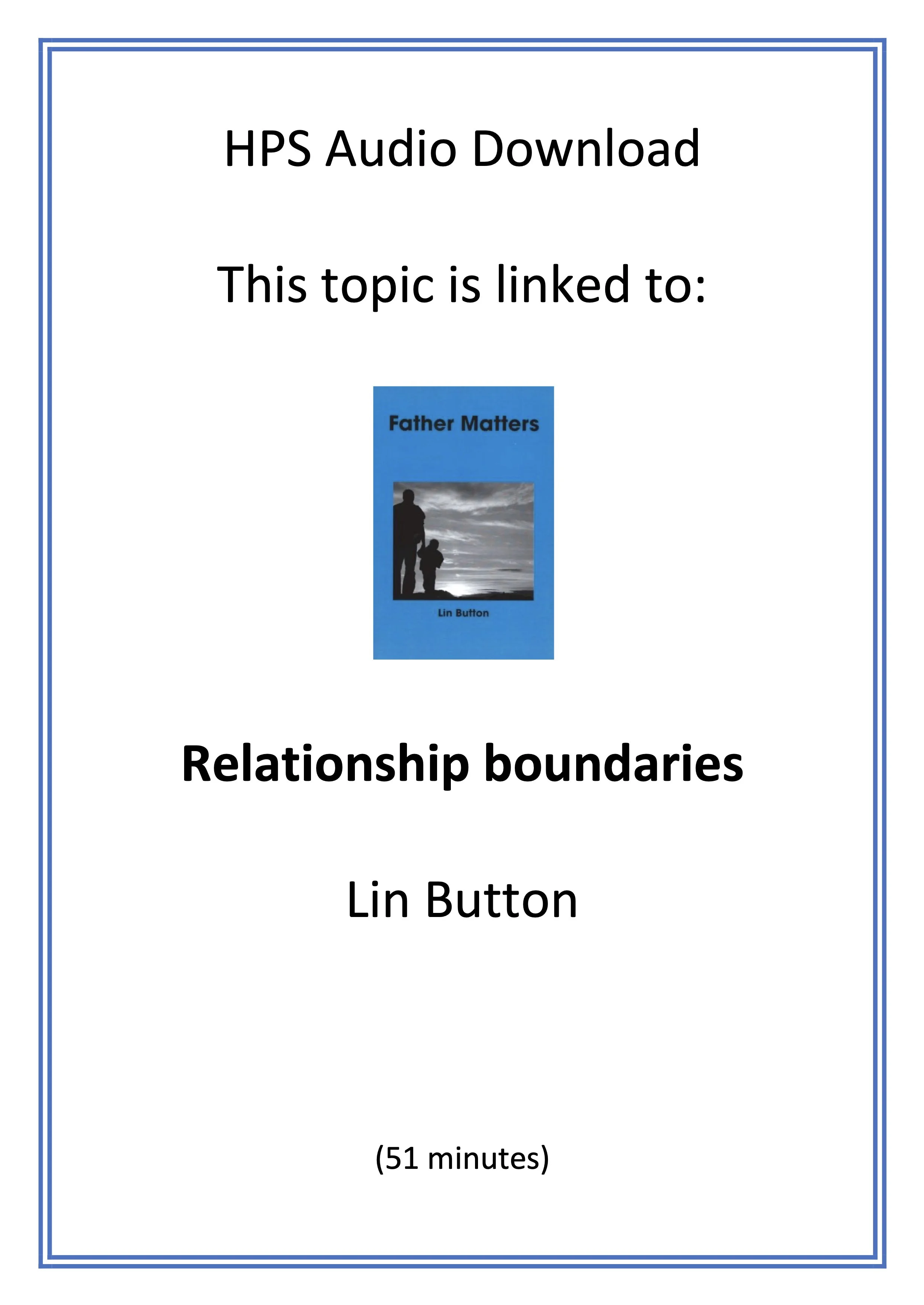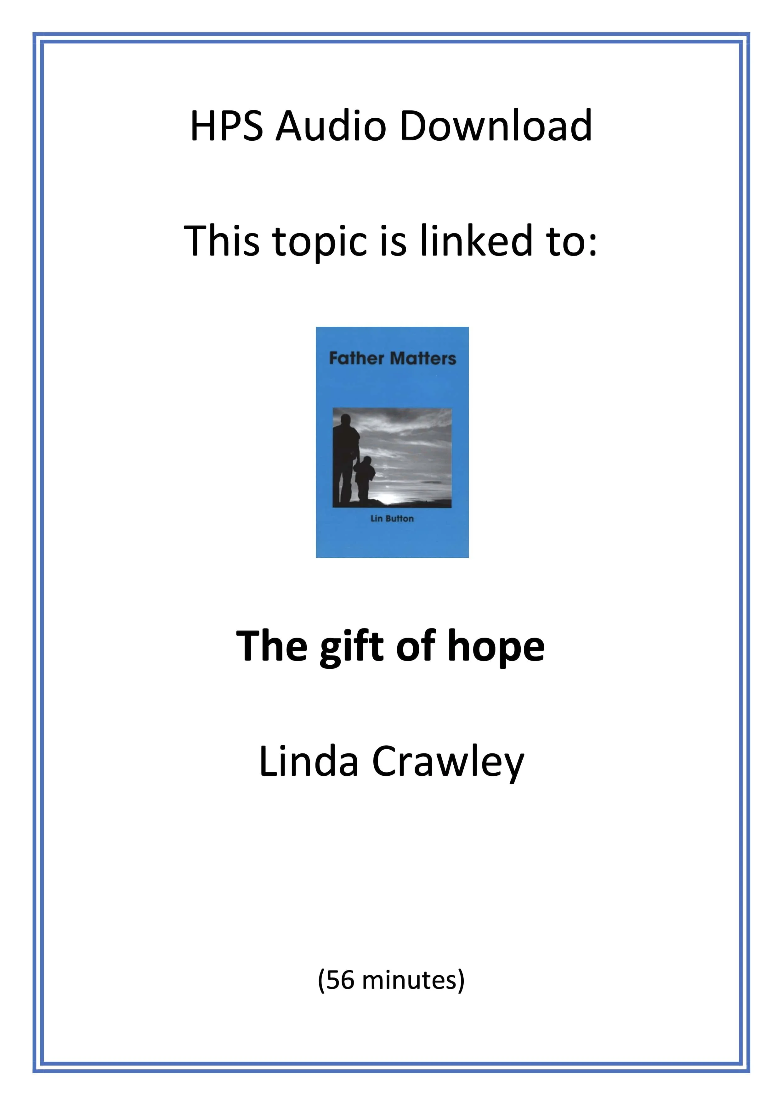 • The six talks which make up the HPS Foundational Series: Sense of Being, Image of Father, Confession, Forgiveness, Shame and Self-acceptance;